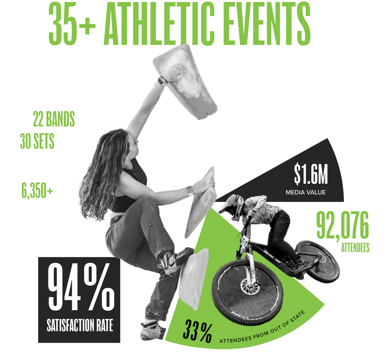 The GoPro Mountain Games reached new heights in 2023 with a record 92,000+ spectator visits over the four days of the event.